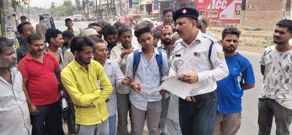 करें,राहगीरों को यातायात नियमों के बारे में समझाया हैं,इस अवसर पर कांस्टेबल गुलफाम मौजूद रहे।