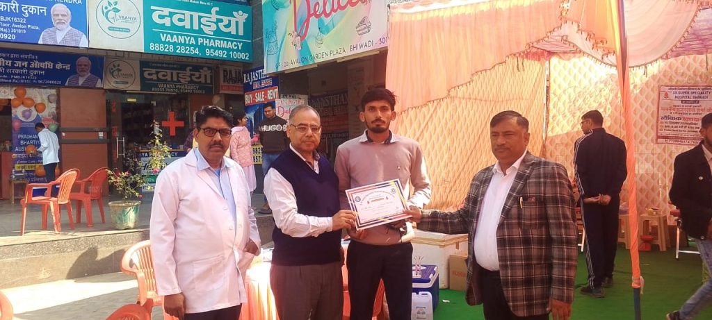 बताया कि 15 दिसंबर 2024 को औषधि नियंत्रण विभाग के मार्गदर्शन से एसएस सुपर स्पेशलिस्ट अस्पताल भिवाड़ी के तत्वाधान में राजस्थान मुख्यमंत्री