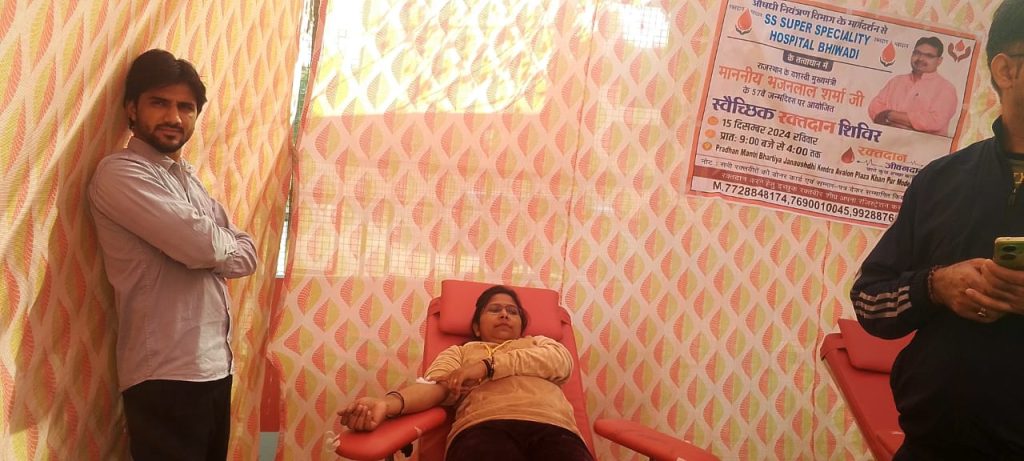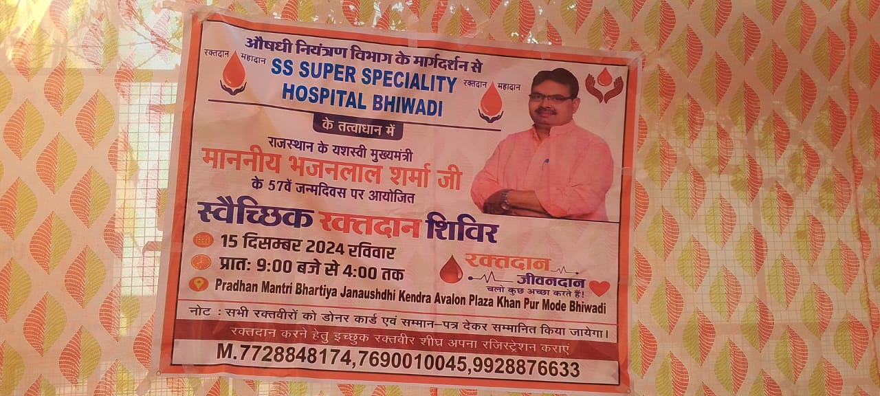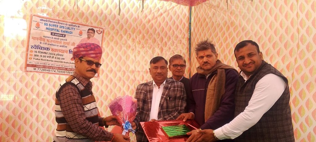 भजनलाल शर्मा के 57 वें जन्मदिन पर स्वैच्छिक रक्तदान शिविर का आयोजन किया गया। जिसमें करीब 60 यूनिट रक्त एकत्रित हुआ। एसएस अस्पताल