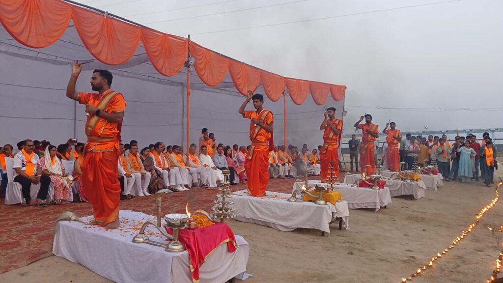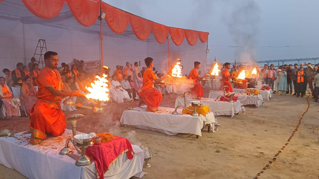 गंगा की सफाई व स्वच्छता के लिए कार्य कर रही संस्था की दो दिन की कार्यशाला के उपरांत आज गंगा आरती का किया गया आयोजन