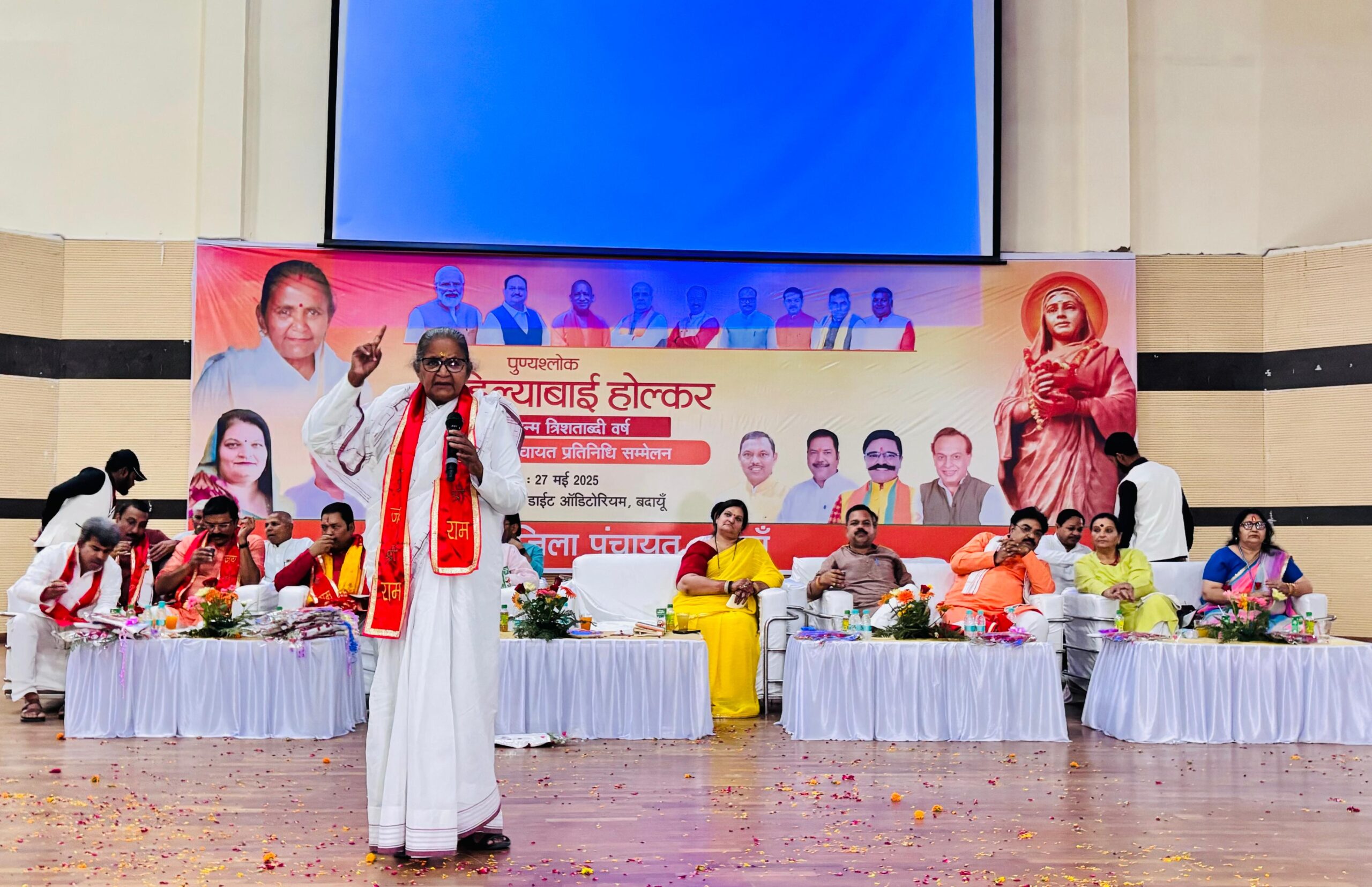 बदायूं :- लोकमता अहिल्याबाई होल्कर की 300वीं जयंती के उपलक्ष्य में जिला-पंचायत प्रतिनिधि सम्मेलन डायट ऑडिटोरियम बदायूं में किया गया। उपस्थित जनसमूह ने अहिल्याबाई के चित्र पर पुष्पांजलि अर्पित करके उनका स्मरण किया। कार्यक्रम में जिला पंचायत सदस्य, ग्राम प्रधान और क्षेत्र पंचायत सदस्य (बीडीसी) बड़ी संख्या में उपस्थित रहे।