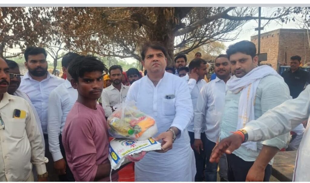 घरों में पशु व अनाज एवं घरेलू सामान जलकर पल भर में खाक हो गया । जिसको लेकर गांव में अफरा तफरी मची रही जिसको लेकर पीड़ित परिजनों से शनिवार को मिलने वरिष्ठ भाजपा नेता विक्रांत यादव पहुंचे और उन्होंने परिजनों को राहत सामग्री वितरण कर हर संभव मदद का भरोसा दिया।