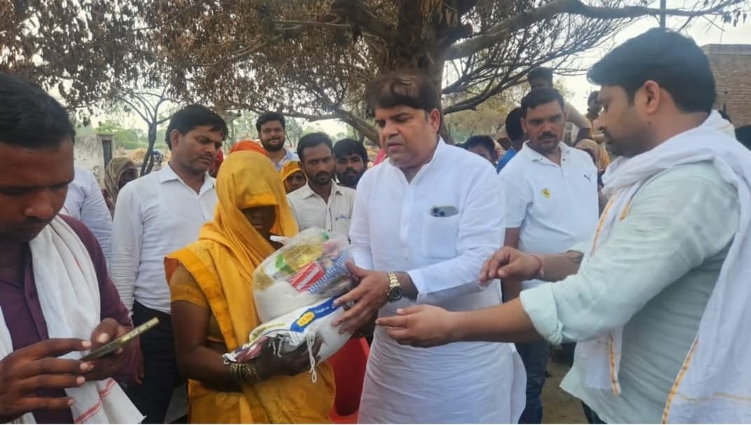 घरों में पशु व अनाज एवं घरेलू सामान जलकर पल भर में खाक हो गया । जिसको लेकर गांव में अफरा तफरी मची रही जिसको लेकर पीड़ित परिजनों से शनिवार को मिलने वरिष्ठ भाजपा नेता विक्रांत यादव पहुंचे और उन्होंने परिजनों को राहत सामग्री वितरण कर हर संभव मदद का भरोसा दिया।
