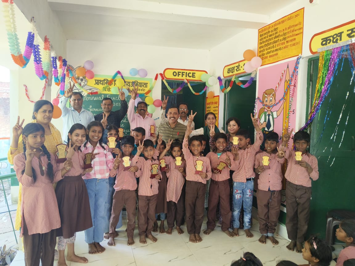 प्रेरित किया। प्रधानाध्यापक राजेश कुमार द्वारा निपुण बच्चों को निपुण सर्टिफिकेट तथा प्रत्येक कक्षा के सर्वश्रेष्ठ तीन बच्चों मोमेटों देकर सम्मानित किया तथा सभी प्रतिभावान बच्चों को कॉपी पेंसिल रबर कटर पेंसिल बॉक्स वैक्स कलर देकर सम्मानित किया गया। अंत में सरिता सचान द्वारा सभी का आभार व्यक्त किया गया। इस अवसर पर सरिता सचान, जिज्ञासा सक्सेना, राजेंद्र कुमार शर्मा, सना खानम, राज बेटी, हिमांशु ,मुनेंद्र, महिपाल, दीपक अन्य बहुत से गणमान्य लोग उपस्थित रहे।