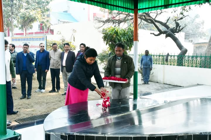 मौन धारण किया व शहीदों को पुष्पांजलि अर्पित की साथ ही उनकी सेवा और बलिदान को याद किया। तत्पश्चात उन्होंने अधिकारियों एवं कर्मचारियों को कुष्ठ रोगियों से भेदभाव न करने की शपथ दिलाई।