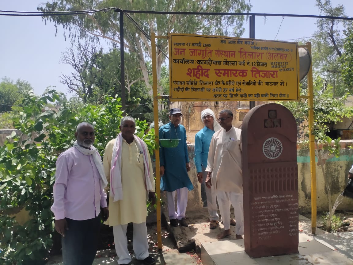 तिजारा। देश भक्ति, समाज सेवा और लोगों की सेवा के लिए हमेशा तत्पर रहने वाले जन जागृति संस्थान तिजारा द्वारा देखरेख किए जाने वाले शहीद स्मारक पर, गर्मियों