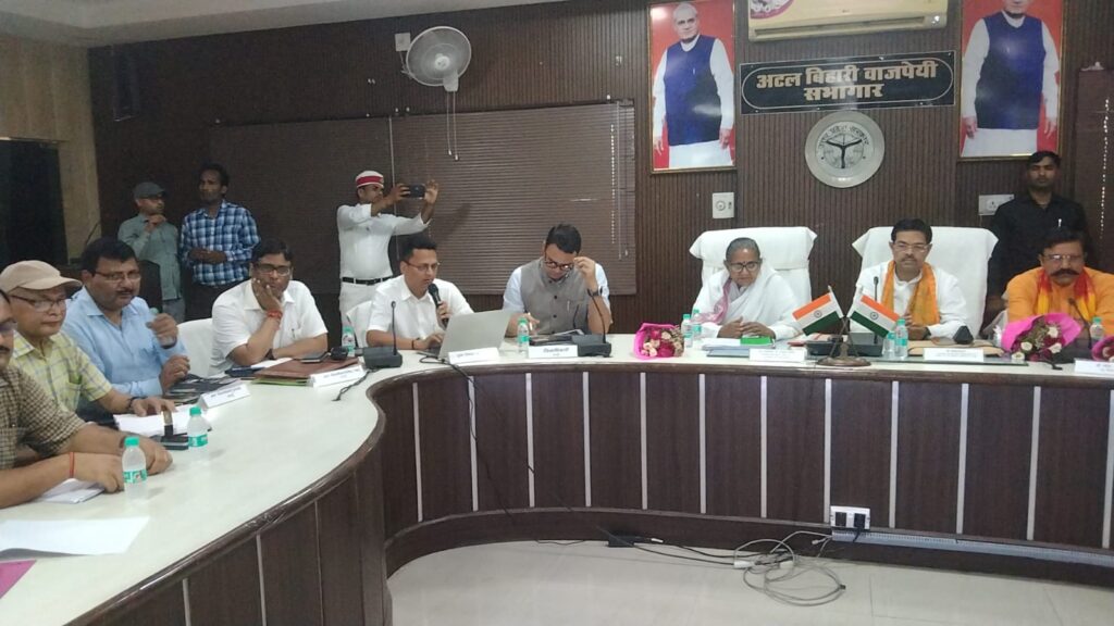 बदायूँ: 21 अप्रैल जनपद की मा0 प्रभारी मंत्री गुलाब देवी ने सोमवार को कलेक्ट्रेट स्थित अटल बिहारी वाजपेयी सभागार में मुख्यमंत्री डैशबोर्ड, जिला अनुश्रवण पुस्तिका के कार्यों की समीक्षा बैठक की अध्यक्षता करते हुए अधिकारियों को सक्रियता व सजगता से कार्य करने व कार्यों को नैतिक दायित्व मानकर उसका निर्वहन करने के लिए कहा। बैठक में विशेषकर विद्युत व्यवस्था में आवश्यक सुधार के निर्देश विद्युत अधिकारियों को दिए गए।