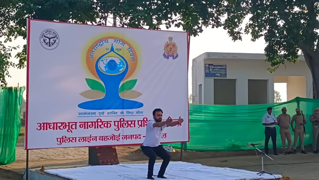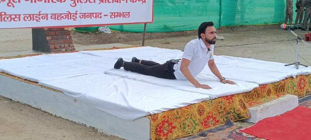 सम्भल में 11वें अंतर्राष्ट्रीय योग दिवस-2025 के अवसर पर रिक्रूट सेन्टर ईश्वर दास टैक्निकल इन्स्टीट्यूट बहजोई में पुलिसकर्मियों एवं नवचयनित रिक्रूट आरक्षियों के साथ योगाभ्यास कर उन्हें योग के प्रति प्रेरित किया गया