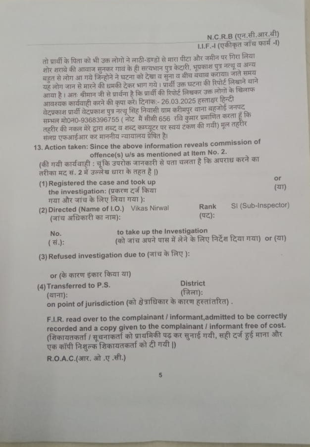 कि विरोध करने के बाद कहासूनी गाली गलौच करते हुए घर मे घुसकर पीड़ित के साथ मारपीट शुरू कर दी है,ज़िस कारण व लहूलुहान होकर बेहोशी की हालत में जमीन पर गिर गया है ,जिसको बचाने आये उसके