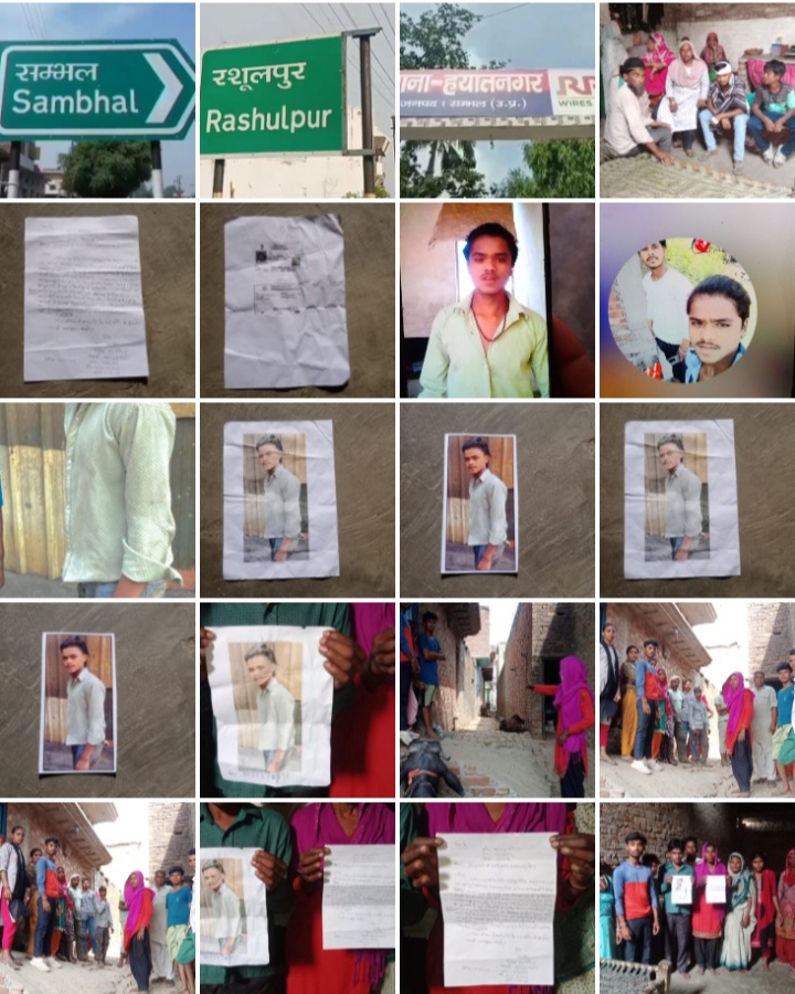 संभल।यूपी के जनपद सम्भल में हयात नगर थाना क्षेत्र के ग्राम रसूलपुर में घर से काम पर निकले युवक का सुराग नही मिलने के कारण परेशान परिवार के लोग लगा रहे दौड़ नही मिल पा रहा कोई सुराग, हयात नगर थाने में पँहुच दी गुमशुदगी की तलाश पुलिस भी लगी युवक की तलाश में, हयातनगर थाना क्षेत्र के ग्राम रसूलपुर निवासी रोहित सैनी पुत्र दिनेश नामक युवक बीती 13 मई को काम करने अपने ग्राम रसूलपुर से उत्तराखंड काशीपुर के निकला था,लेकिन मुरादाबाद रेलवे स्टेशन पर पहुँचने के बाद गाड़ी छूट जाने के कारण काशीपुर नही पँहुचा है,जिसके बाद से परिवार के लोग परेशान है और फोन भी उसी दिन से स्विच ऑफ आ रहा है,जिस कारण परिवार के लोग परेशान है और जगह जगह फोन कर उसको तलाश रहे है लेकिन रोहित का कोई पता नही चल पा रहा है,रोहित के पिता ने बताया कि उनकी बात आखिरी बार रोहित से 13 मार्च को हुई थी तब उसने बताया था उसकी ट्रेन 2 वाली छूट गई है और अब वह 5 वाली ट्रेन से जायेगा जिसके बाद पिता ने