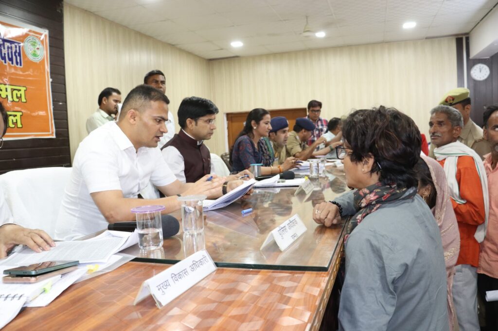 संभल। यूपी के जनपद सम्भल में जिलाधिकारी डॉ0 राजेन्द्र पैंसिया व पुलिस अधीक्षक कृष्ण कुमार बिश्नोई की अध्यक्षता में तहसील सम्भल में “संपूर्ण समाधान