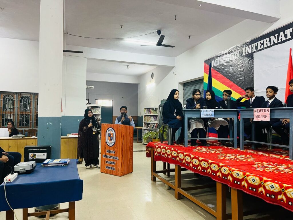 करने में भी सहायक होती है,मैं इस अवसर पर हमारे जुनैद इब्राहिम, यमशुना रूही समेत सभी शिक्षकों, आयोजकों और स्वयंसेवकों को धन्यवाद देना चाहता हूँ, जिन्होंने इस प्रतियोगिता को सफल बनाने में अपना बहुमूल्य योगदान दिया। आपके समर्पण और कड़ी मेहनत के बिना यह कार्यक्रम संभव नहीं था,मैं हमारे सम्मानित न्यायाधीशों, परवीन ताज, रब्बे नवाज़ और फैज़ान अली को भी धन्यवाद देना चाहता हूँ, जिन्होंने निष्पक्षता और कुशलता से अपनी भूमिका निभाई,मैं हमारे गणमान्य अतिथियों, डायरेक्टर शबाना कोसर, वाइस प्रिंसिपल शाने रब को उनकी उपस्थिति और प्रोत्साहन के लिए धन्यवाद देता हूँ,अंत में, मैं सभी छात्रों और अभिभावकों को धन्यवाद देना चाहता हूँ, जिन्होंने इस प्रतियोगिता में भाग लिया और इसे सफल बनाया,मुझे विश्वास है कि यह प्रतियोगिता हमारे छात्रों को भविष्य में भी ज्ञान और सफलता की राह पर चलने के लिए प्रेरित करेगी,विजेता टीम “आइंस्टाइन” के इंचार्ज मदिहा तारिक और अन्य सदस्यों ने अपनी खुशी व्यक्त करते हुए कहा, “हमने इस प्रतियोगिता के लिए कड़ी मेहनत की थी, और हमें खुशी है कि हमारी मेहनत रंग लाई। हम अपने शिक्षकों और परिवार के आभारी हैं जिन्होंने हमारा समर्थन किया,यह प्रतियोगिता न केवल प्रतिभागियों के लिए, बल्कि दर्शकों के लिए भी ज्ञानवर्धक और मनोरंजक रही,सभार प्रिंसिपल मिशन इंटरनेशनल एकेडमी।