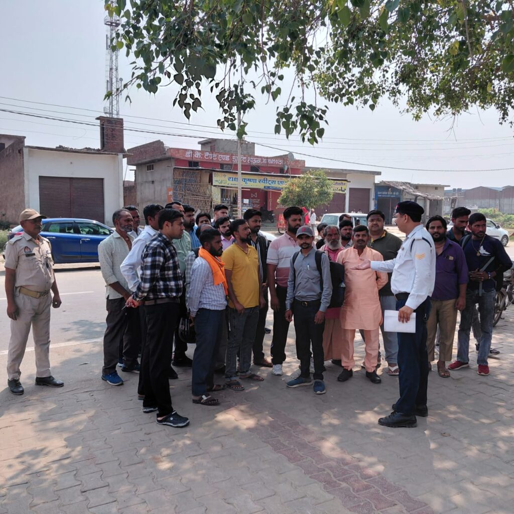 सेफ्टी अभियान परवाह ,Care,के अंतर्गत बहजोई कोतवाली क्षेत्र में मुख्य आरक्षी सोनू अहलावत के द्वारा यातायात नियमों संबंधी जागरूकता कार्यक्रम किया गया