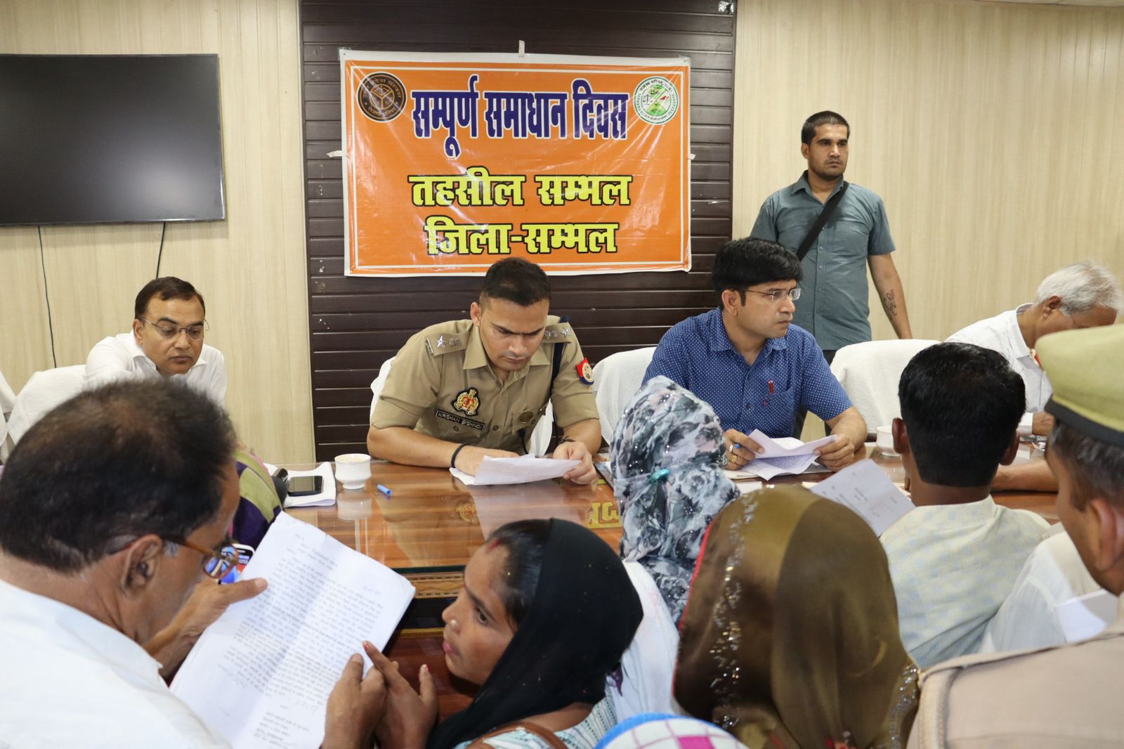 संभल। यूपी के जनपद सम्भल में जिलाधिकारी डॉ0 राजेन्द्र पैंसिया एवं पुलिस अधीक्षक कृष्ण कुमार बिश्नोई की अध्यक्षता में तहसील सम्भल में ,संपूर्ण समाधान