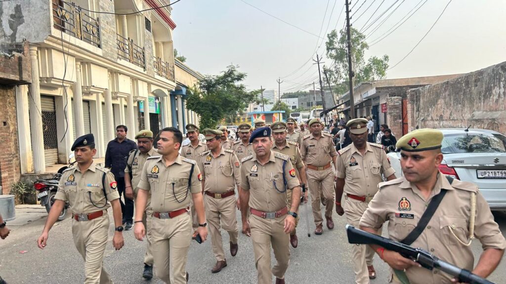संभल। यूपी के जनपद सम्भल में जिलाधिकारी डॉ0 राजेन्द्र पैंसिया एवं पुलिस अधीक्षक कृष्ण कुमार बिश्नोई ने पुलिस बल के साथ शांति व कानून व्यवस्था के दृष्टिगत सम्भल सदर कोतवाली क्षेत्र में एवं नखासा थाना