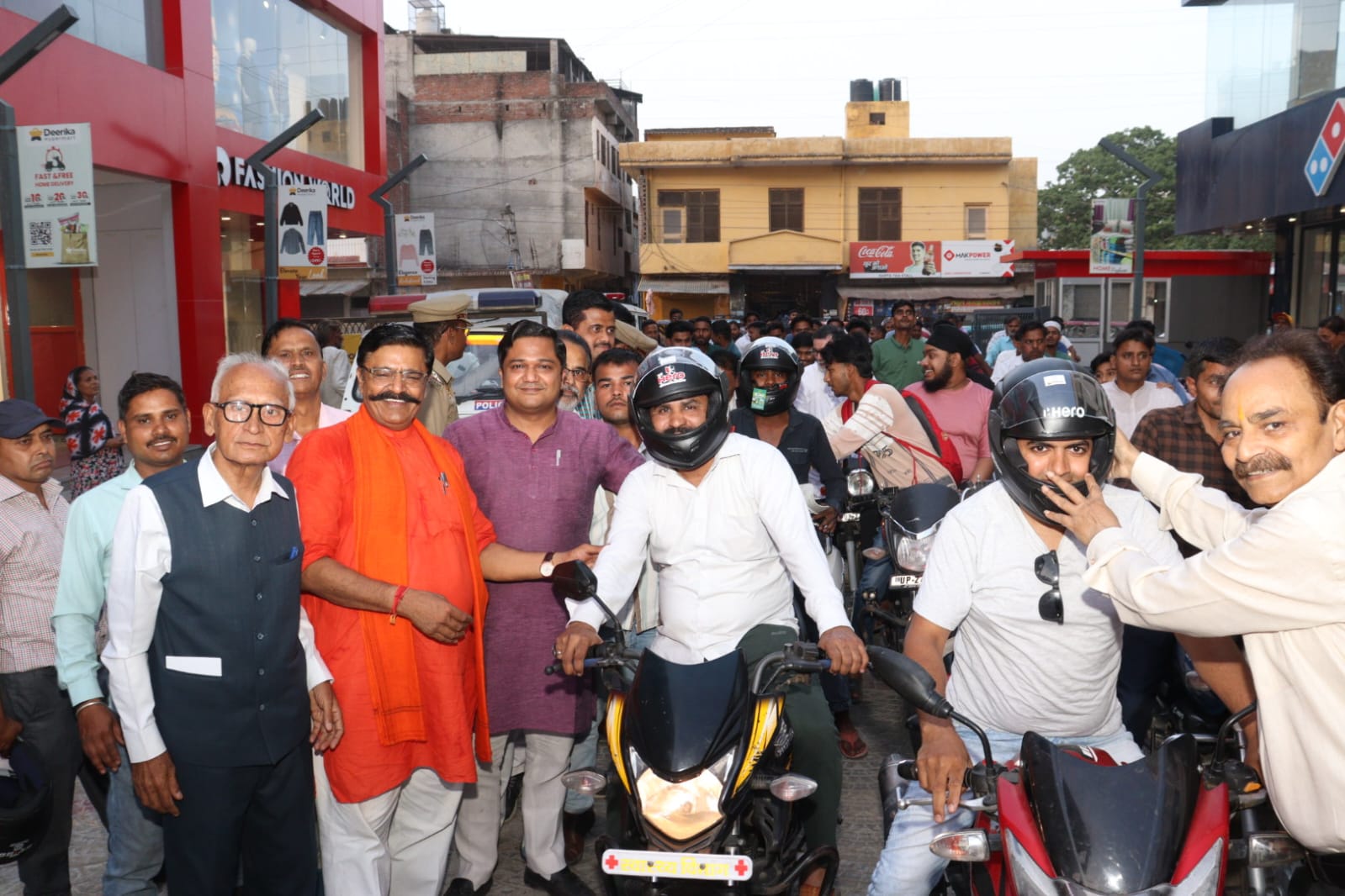 मॉल पर 500 लोगों को जीवन रक्षा हेतु निशुल्क रूप से हेलमेट वितरित किए गए सदर विधायक महेश चंद्र गुप्ता ने कहा प्रत्येक वाहन चालक को वाहन चलाते समय हेलमेट का प्रयोग करना चाहिए जिससे कोई भी दुर्घटना