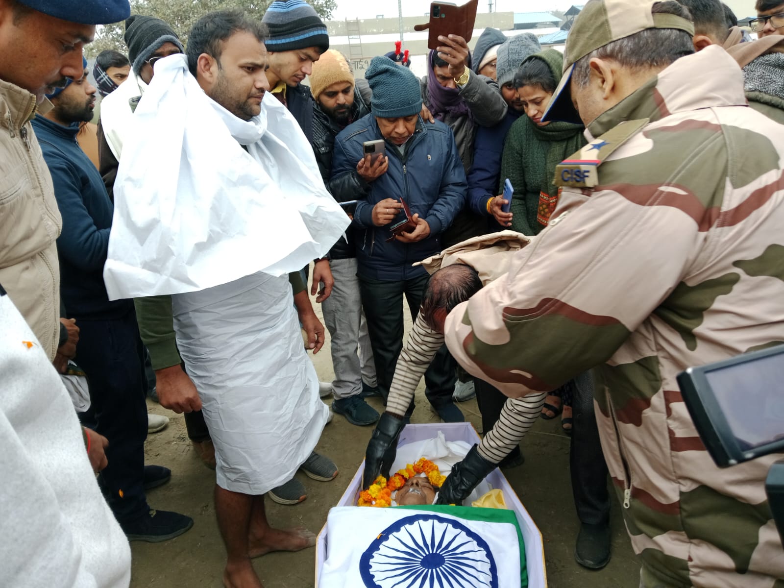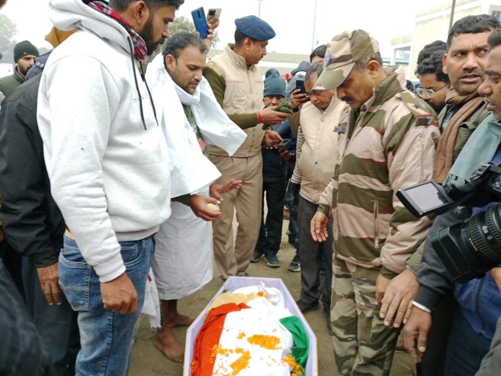 के सभी लोग शव देखने के लिए इकट्ठे हो गए गुरुवार को गंगा घाट कछला पर राजकीय सम्मान के साथ उनका अंतिम संस्कार किया गया। चित्रांश नगर से शुरू होकर अंतिम यात्रा कछला गंगा घाट पहुंची। चित्रांश नगर में हवलदार कमलेश कुमार सक्सेना को नम आंखों से रिश्तेदार सगे संबंधियों मोहल्ला वासियों ने विदाई दी कछला गंगा घाट पर डिवाई से सीआईएस एफ जवानों की एक टुकड़ी ने सलामी दी। तिरंगा झंडा में लिपटे हवलदार कमलेश कुमार सक्सेना से झंडा हटाया गया वह झंडा उनके परिवारजनों को सौंप दिया गया। परिवार में रोता विलखता पत्नी व तीन पुत्री को छोड़कर गए हैं
