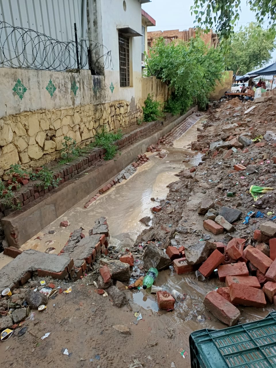 भिवाड़ी। भिवाड़ी के समीप टपूकडा़ के सरकारी अस्पताल नूंह चोक के पास मंगलवार को 15 मिनट आई बारिश में फिर एक बार एक पाच फुट उची बनी नाले की करीब 70 फुट दिवार दूसरी दिवार पर गिरी। गनीमत यह रही की दूसरी दिवार के सहारे अस्पताल की दिवार थी। जिससे नाले की गिरी दिवार से बड़ा हादसा होने से बचा। ग्रामीणों ने बताया कि यह नाले की दिवार नगरपालिका टपूकडा़ द्वारा बनाई जा रही थी पहले भी