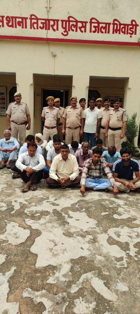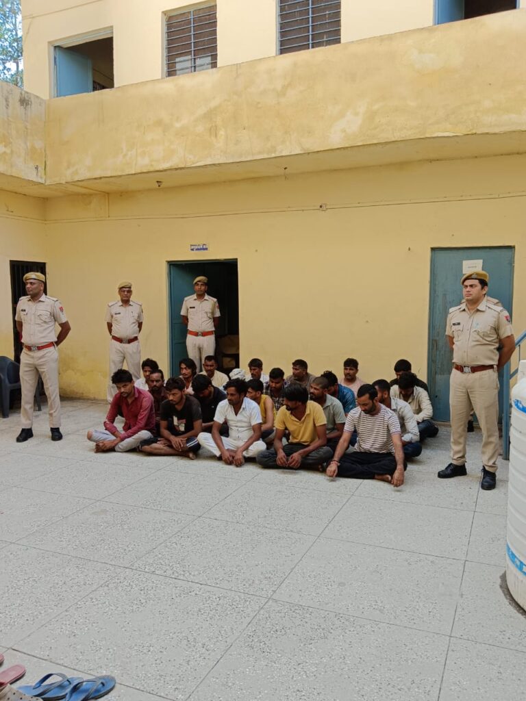 की कार्रवाई की गई। इस अभियान में 22 पुलिस टीमों द्वारा भिवाड़ी जिले में 114 स्थानों पर दबिश देकर 109