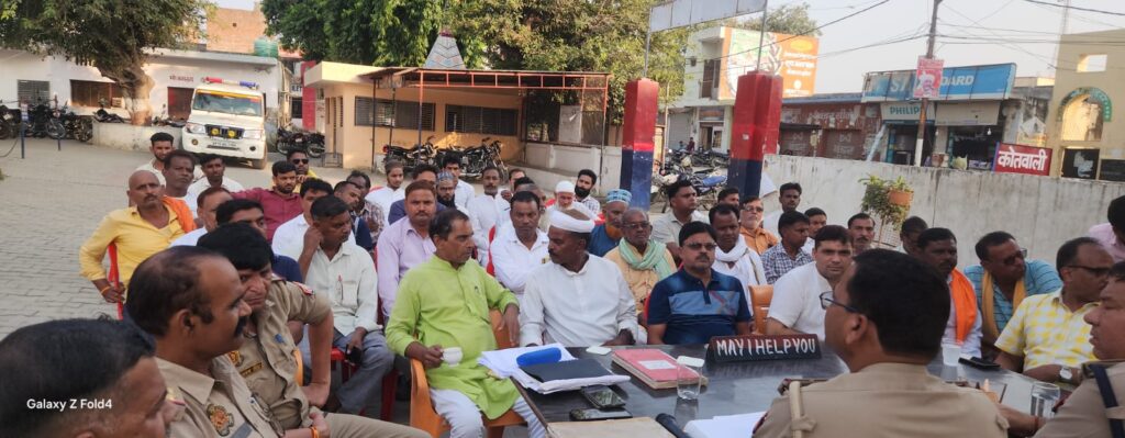 गतिविधि की सूचना तत्काल कोतवाली पुलिस को देने का आग्रह किया सभी लोगों से शांति व्यवस्था बनाए रखने में प्रशासन का सहयोग करने की अपील की बैठक में लोगों ने भी अपने विचार रखे और प्रशासन को सहयोग का भरोसा दिलाया। इस दौरान पूर्व युवा मोर्चा जिला अध्यक्ष अनुज महेश्वरी, अवढर शर्मा, चौधरी पुत्तन आजाद, आदर्श सक्सेना, सचिन शर्मा, बॉबी महेश्वरी सहित नगर के सभासद गढ़ एवं ग्राम प्रधान उपस्थित रहे।