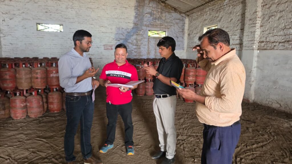 गैस एजेंसी गोदाम का निरीक्षण करते जिला पूर्ति अधिकारी मनीष सिंह