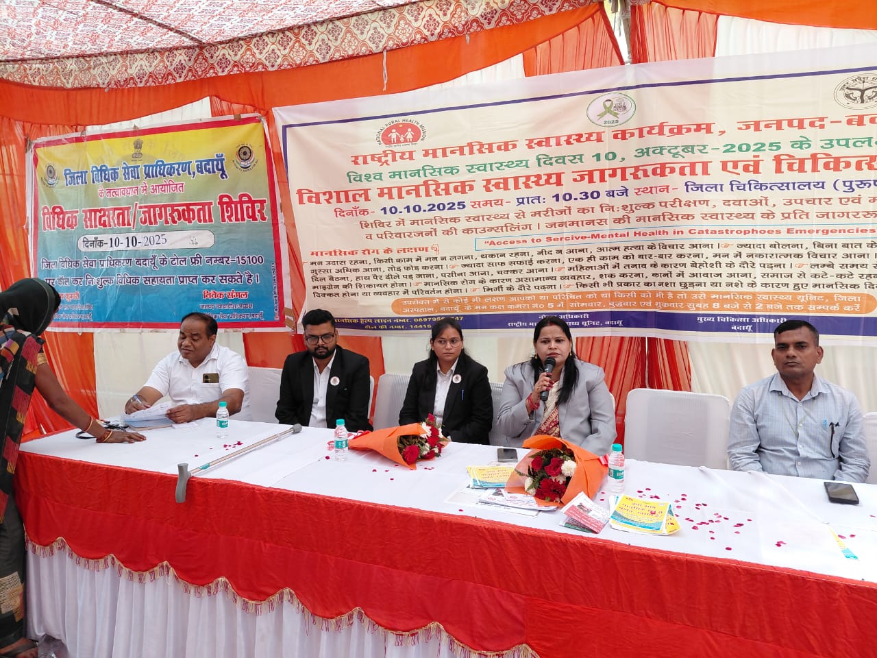बदायूँ : 10 अक्टूबर। माननीय जनपद न्यायाधीश व अध्यक्ष, जिला विधिक सेवा प्राधिकरण, बदायूं के निर्देशनुपालन में सचिव जिला विधिक सेवा प्राधिकरण, बदायूं द्वारा शुक्रवार को जिला पुरूष चिकित्सालय, बदायूँ में विश्व मानसिक स्वास्थ्य दिवस के अवसर पर जागरूकता शिविर का अपर जनपद न्यायाधीश/सचिव, जिला विधिक सेवा प्राधिकरण शिव कुमारी द्वारा फीता काटकर कार्यक्रम का प्रारम्भ किया गया।