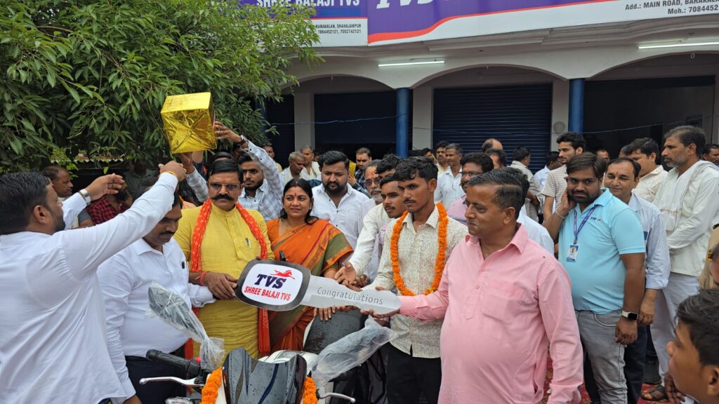 आज दिनांक 21.7.2025 को लवकेश गुप्ता, डिम्पल गुप्ता के नए प्रतिष्ठान श्री बालाजी टीवीएस शोरूम बाराकलॉ शाहजहांपुर का भव्य शुभारंभ