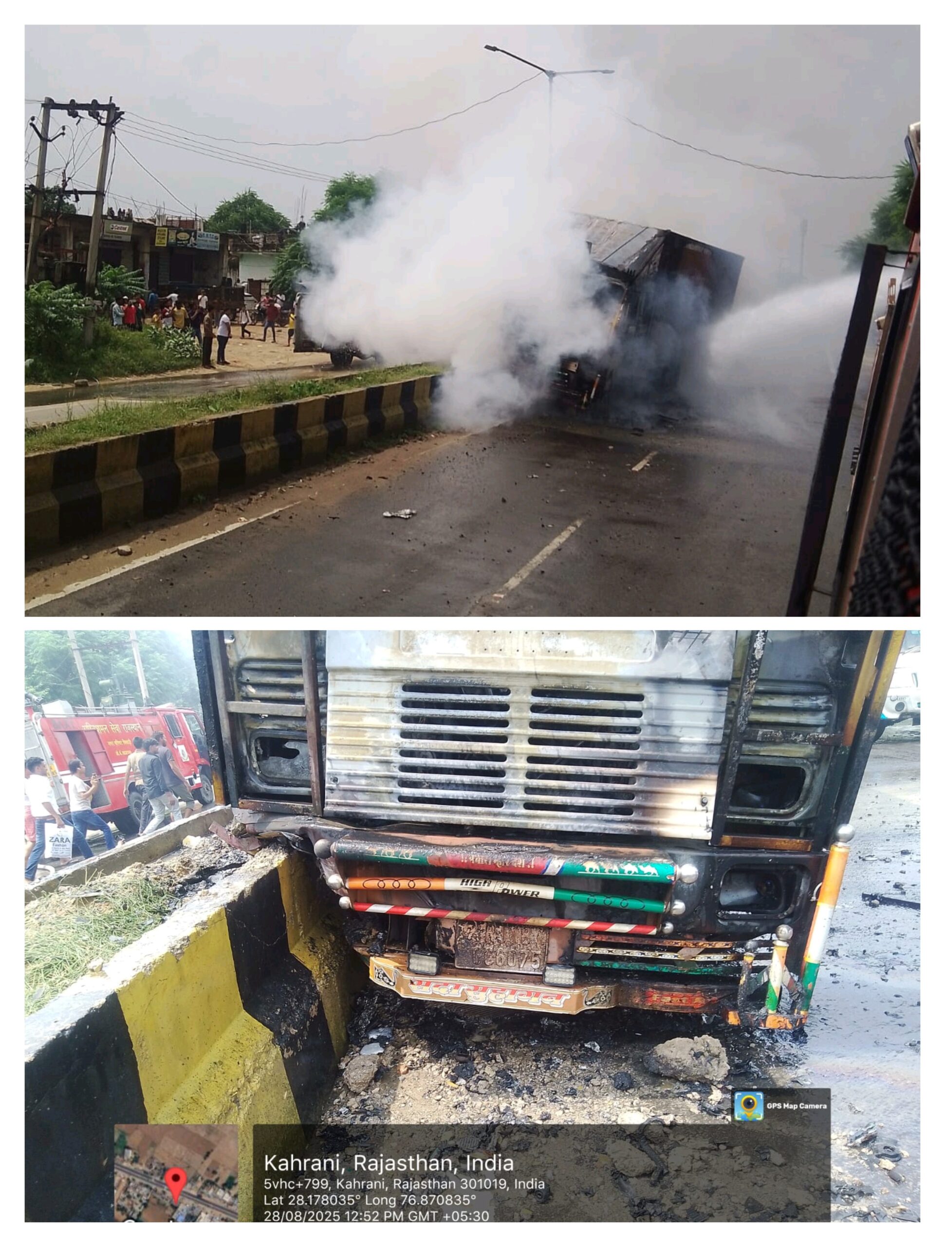 टक्कर इतनी जबरदस्त थी कि कुछ ही पलों में ट्रक में आग लग गई और पलभर में लपटें आसमान छूने लगीं।