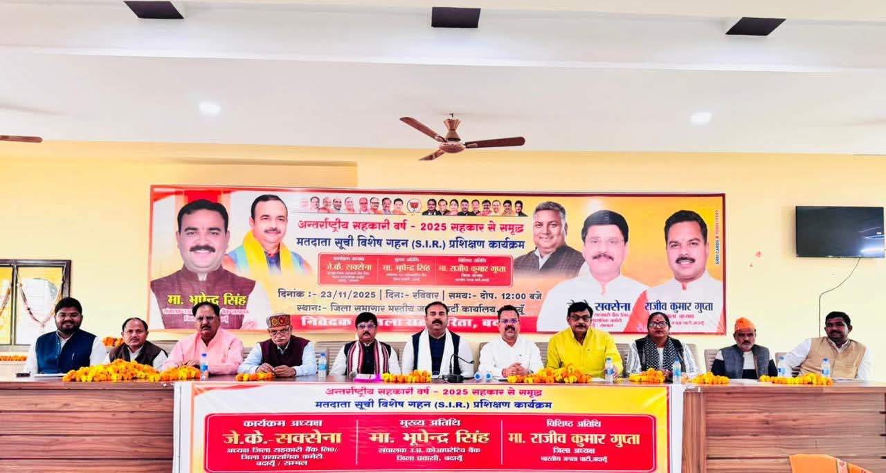 बदायूं :- भाजपा कार्यालय पर जनपद बदायूं के पैक्स समिति के सभापति एवं उप सभापति को मतदाता सूची विशेष गहन (एसआईआर) प्रशिक्षण दिया गया। जिसमें जनपद की सभी पैक्स समिति के सभापति, उपसभापति, सचिव, संघ और क्रय विक्रय समिति के सभापति उपस्थित रहे।