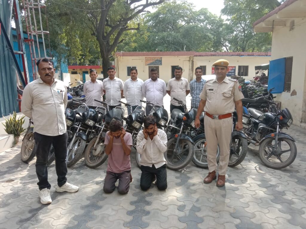 भिवाड़ी, 10 अक्टूबर। भिवाड़ी पुलिस ने सक्रिय वाहन चोर गिरोह के दो शातिर अपराधियों — शंकर पुत्र बाबूलाल सैनी निवासी जौड़िया पट्टी बहादुरपुर (अलवर) और उनशेद उर्फ बिल्ली पुत्र कमरूदीन निवासी टोहरी (किशनगढ़बास, खैरथल-तिजारा) — को गिरफ्तार कर उनके कब्जे से 10 चोरी की मोटरसाइकिलें बरामद करने में बड़ी सफलता हासिल की है। यह कार्रवाई पुलिस अधीक्षक श्री प्रशांत किरण (आईपीएस) के निर्देश, अतिरिक्त पुलिस अधीक्षक श्री अतुल शाहू (आरपीएस) व वृत्ताधिकारी श्री कैलाश चौधरी (आरपीएस) के सुपरविजन में, थानाधिकारी श्री देवेंद्र प्रसाद के नेतृत्व में गठित विशेष टीम द्वारा की गई। घटना 15 मई 2025 को परिवादी संदीप कुमार ने अपनी मोटरसाइकिल (RJ-02-BP-2564) स्टार हॉस्पिटल भिवाड़ी के बाहर पार्क की थी, जो कुछ ही घंटों में चोरी हो गई। मामले की गंभीरता को देखते हुए पुलिस ने इलाके में लगे सैकड़ों CCTV फुटेज खंगाले और दोनों आरोपियों को चिन्हित कर धर दबोचा। बरामद मोटरसाइकिलें: