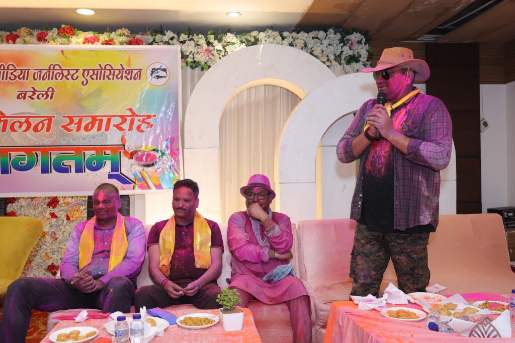 बरेली के पीलीभीत रोड स्थित किंग हेरिटेज होटल में इलेक्ट्रॉनिक मीडिया जर्नलिस्ट एसोसिएशन की ओर से आयोजित होली मिलन समारोह ने इस बार भव्यता के नए कीर्तिमान स्थापित किए। दोपहर 1:00 बजे से शुरू हुए इस कार्यक्रम में प्रिंट, इलेक्ट्रॉनिक, डिजिटल और सोशल मीडिया के पत्रकारों के साथ बरेली के तमाम जनप्रतिनिधि, वरिष्ठ अधिकारी और शहर के प्रबुद्ध वर्ग के लोग शामिल हुए। फूलों और गुलाल की होली के बीच प्रसिद्ध कवि और कवयित्रियों की प्रस्तुतियों ने कार्यक्रम में चार चांद लगा दिए।