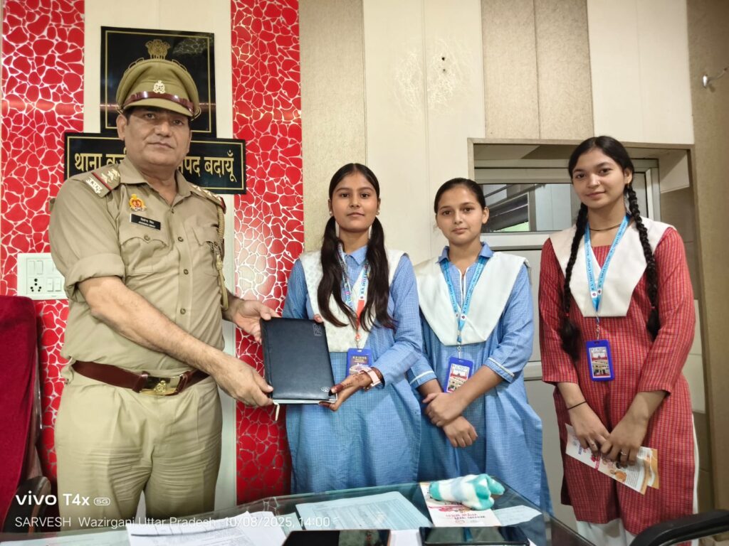 बदायूं के वजीरगंज थाने में R.V इंटर कॉलेज वजीरगंज की 12 वीं कक्षा की एक छात्रा को ‘मिशन शक्ति’ अभियान के तहत एक दिन का थाना प्रभारी बनाया गया है। छात्रा दिशा को पुलिस के विभिन्न कार्यों और महत्वपूर्ण हेल्पलाइन नंबरों के बारे में विस्तृत जानकारी दी गई।
