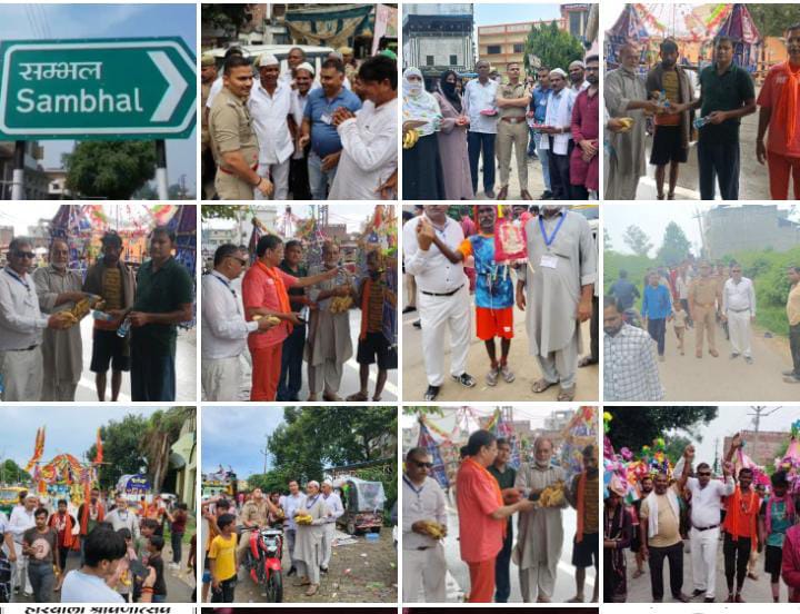 संभल। यूपी के जनपद सम्भल में हयात नगर थाना क्षेत्र में जल चढ़ाने जा रहे पतीलेश्वर मंदिर को जा रहे कावड़ियों पर मुस्लिम समुदाय के लोगों एवं पीस कमेटी