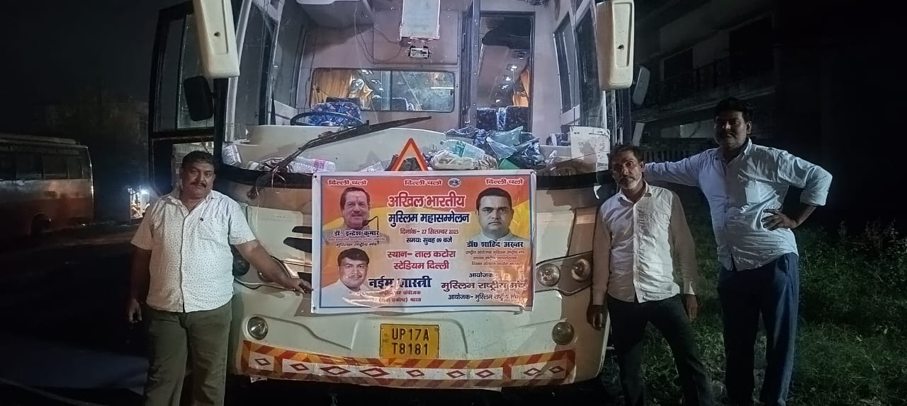 यह बस अखिल भारतीय मुस्लिम महासम्मेलन में भाग लेने के लिए दिल्ली के ताल कटोरा स्टेडियम पहुंच रही है। महासम्मेलन का आयोजन 27 सितंबर, शनिवार को सुबह करीब 9 बजे से होगा।