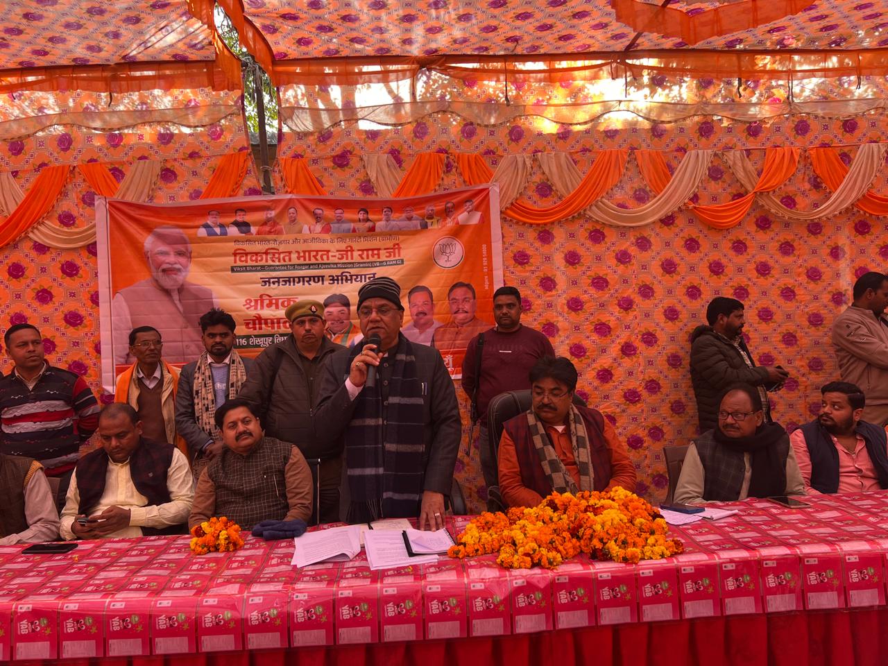म्याँऊ/उसावां :- विकसित भारत रोजगार एवं आजीविका गारंटी मिशन (वीबी-जी-राम-जी) के अंतर्गत आयोजित श्रमिक एवं किसान चौपाल कार्यक्रम में ग्राम टिकरा बछेली तथा म्याँऊ में राज्यसभा सांसद मिथलेश कुमार, पूर्व सांसद धर्मेंद्र कश्यप, पूर्व विधायक धर्मेंद्र शाक्य ने श्रमिकों, किसानों और ग्रामीणजनों से सीधे संवाद कर संबोधित किया।