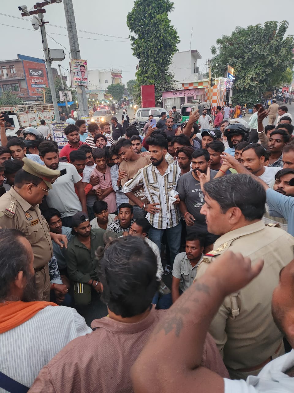 पुलिस प्रशासन मुर्दाबाद के लगाए नारे सीओ सिटी के आधा घंटे में कार्यवाही के आश्वासन पर माने हिंदू संगठन के लोग
