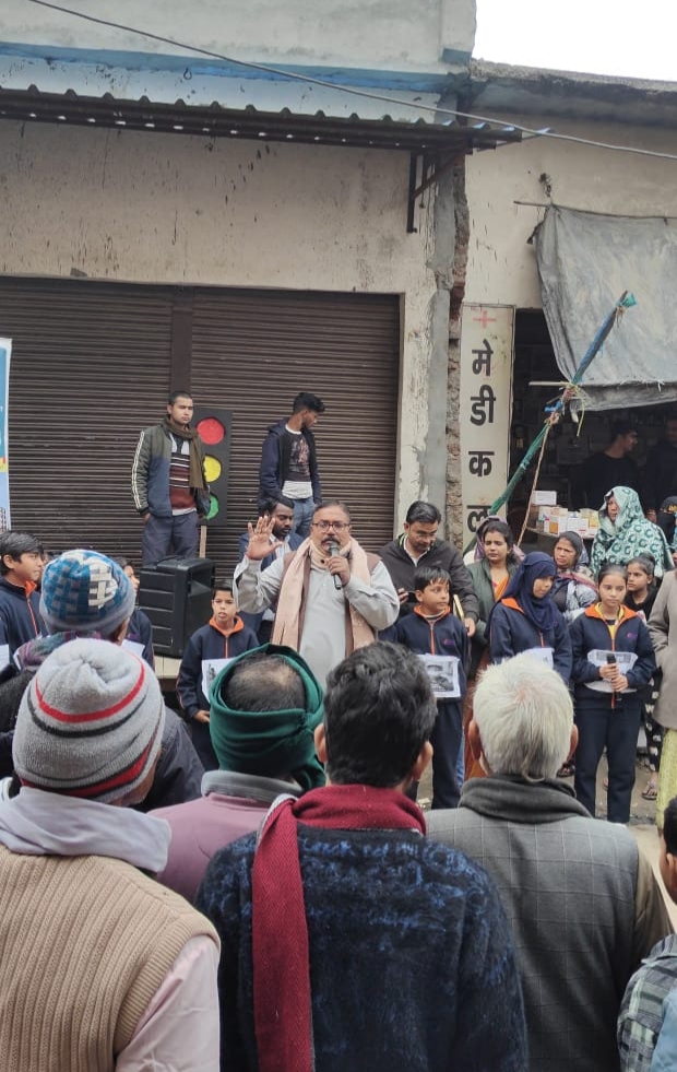 विद्यार्थियों ने प्रभावशाली नुक्कड़ नाटक प्रस्तुत कर हेलमेट पहनने, वाहन चलाते समय मोबाइल फोन का उपयोग न करने तथा यातायात नियमों का सख्ती से पालन करने जैसे महत्वपूर्ण सुरक्षा संदेश दिए। अपने आत्मविश्वासपूर्ण अभिनय और सार्थक प्रस्तुति के माध्यम से विद्यार्थियों ने आमजन को सड़क पर जिम्मेदार व्यवहार के महत्व के प्रति जागरूक किया।
