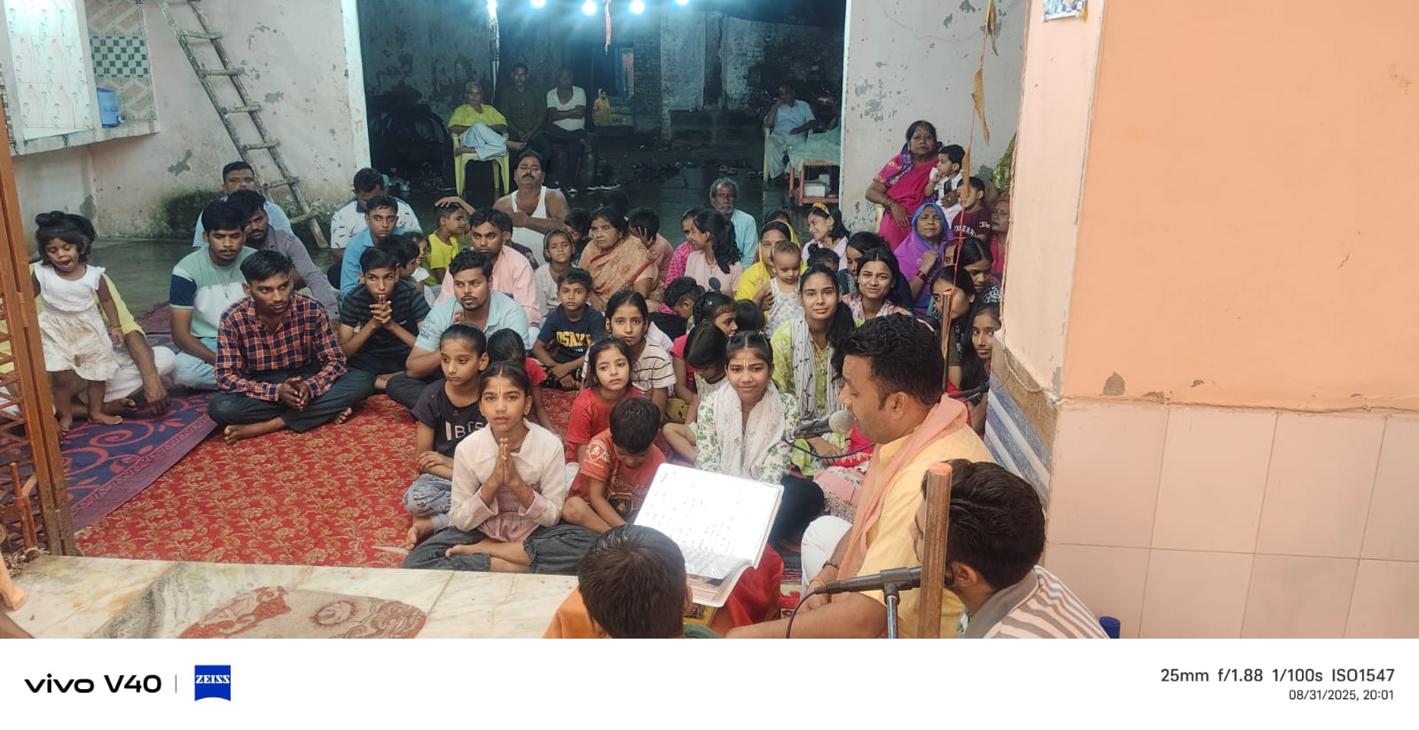 मंत्रमुग्ध कर दिया। महिला श्रद्धालु रीना माहेश्वरी द्वारा बरसाना बजत बधाई किरत घर लाली आई भजन गाया गया। इसके उपरांत भगवान श्री गणेश की आरती के बाद सभी श्रद्धालुओं को छप्पन भोग प्रसाद का वितरण किया गया। इस मौके , सौरभ गुप्ता, विकास माहेश्वरी, नूतन माहेश्वरी, विक्रम, आशीष कुमार, राहुल, डॉक्टर सूरज ,राधे श्याम,रितूराज,नीरेश आदि श्रद्धालु उपस्थित रहे।