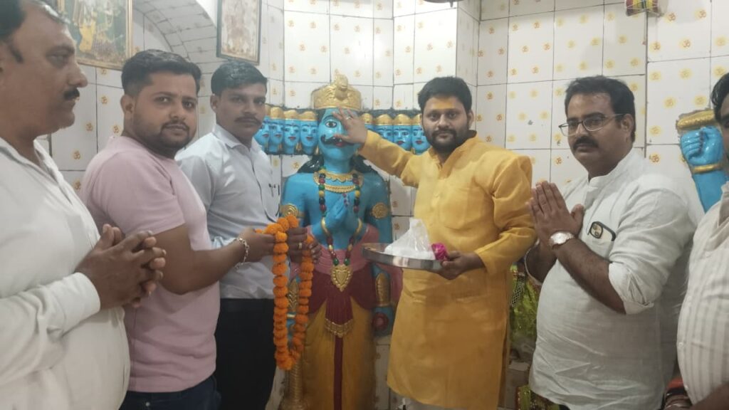 अखिल भारतीय युवा ब्राह्मण महासभा के तत्वाधान में अखिल भारतीय युवा ब्राह्मण महासभा के राष्ट्रीय अध्यक्ष एवं ब्राह्मण क्रांति मोर्चा के प्रदेश महामंत्री पं अमन मयंक शर्मा के नेतृत्व में दशहरा के पर्व पर रावण मंदिर में भगवान शिव एवं महान शिव भक्त रावण की विशेष पूजा अर्चना की गई।