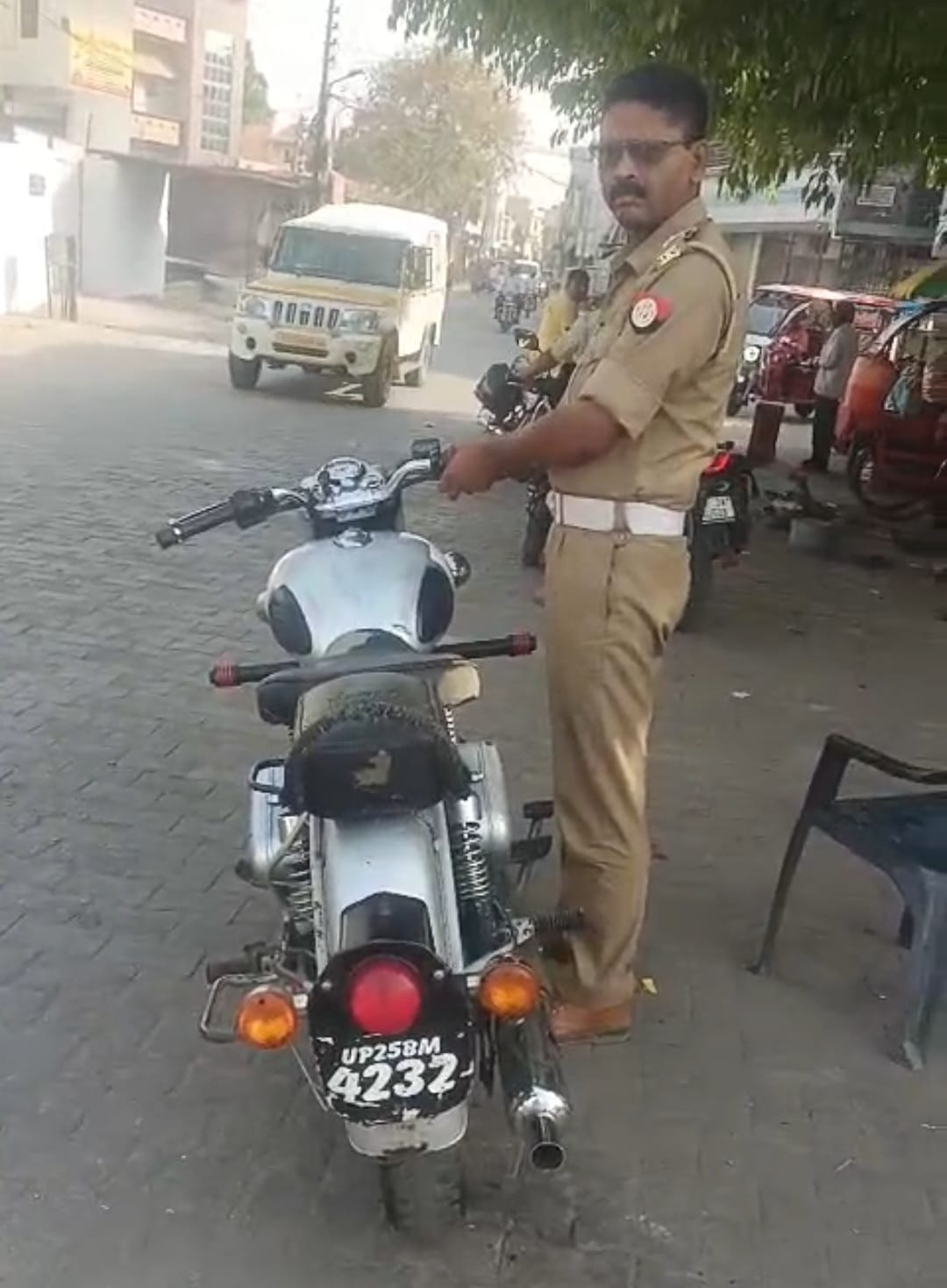 बदायूं।ट्रैफिक पुलिस के सब-इंस्पेक्टर ने मंगलवार को वाहन चेकिंग के दौरान दो पटाखा बाइक समेत एक ईको गाड़ी सीज कर दिया। टीएसआई ललित कुमार ने बताया कि यातायात नियमों के उल्लंघन और ध्वनि प्रदूषण के खिलाफ कार्रवाई की जा रही हैं, यह दोनों ‘पटाखा बाइक’ साइलेंसर से पटाखों जैसी आवाज निकाल रही थी चेकिंग के दौरान इसलिए इन्हें रोककर दोनों बाईकों सीज कर दिया गया हैं। मुख्य रूप से सार्वजनिक स्थानों पर शांति भंग करने और मॉडिफाइड साइलेंसर का उपयोग करने वालों को सबक सिखाने के लिए यह कार्रवाई की गई है। यह अभियान निरंतर चलता रहेगा।