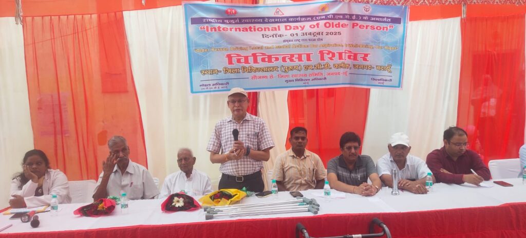 शिविर में वृद्धजनों का स्वास्थ्य परीक्षण किया गया, जिसमें हड्डी रोग, मधुमेह, कान, नाक, गला एवं नेत्ररोग, बीपी, दंतरोग आदि बीमारियों से ग्रस्त वृद्धजनों को औषधि का वितरण किया गया। चिकित्सकों द्वारा वृद्धावस्थ्या में आने वाले शारीरिक परिवर्तनों एवं कमजोरियों के बारे में बताया गया एवं रक्तचाप, दमा, मधुमेह, स्ट्रोक, अलजाइमर, टी0बी0, कब्ज, अवसाद, हृदयरोग आदि बीमारियां होने के कारण वे और कमजोर हो जाते हैं एवं चलने फिरने में बहुत कठिनाई आती है।
