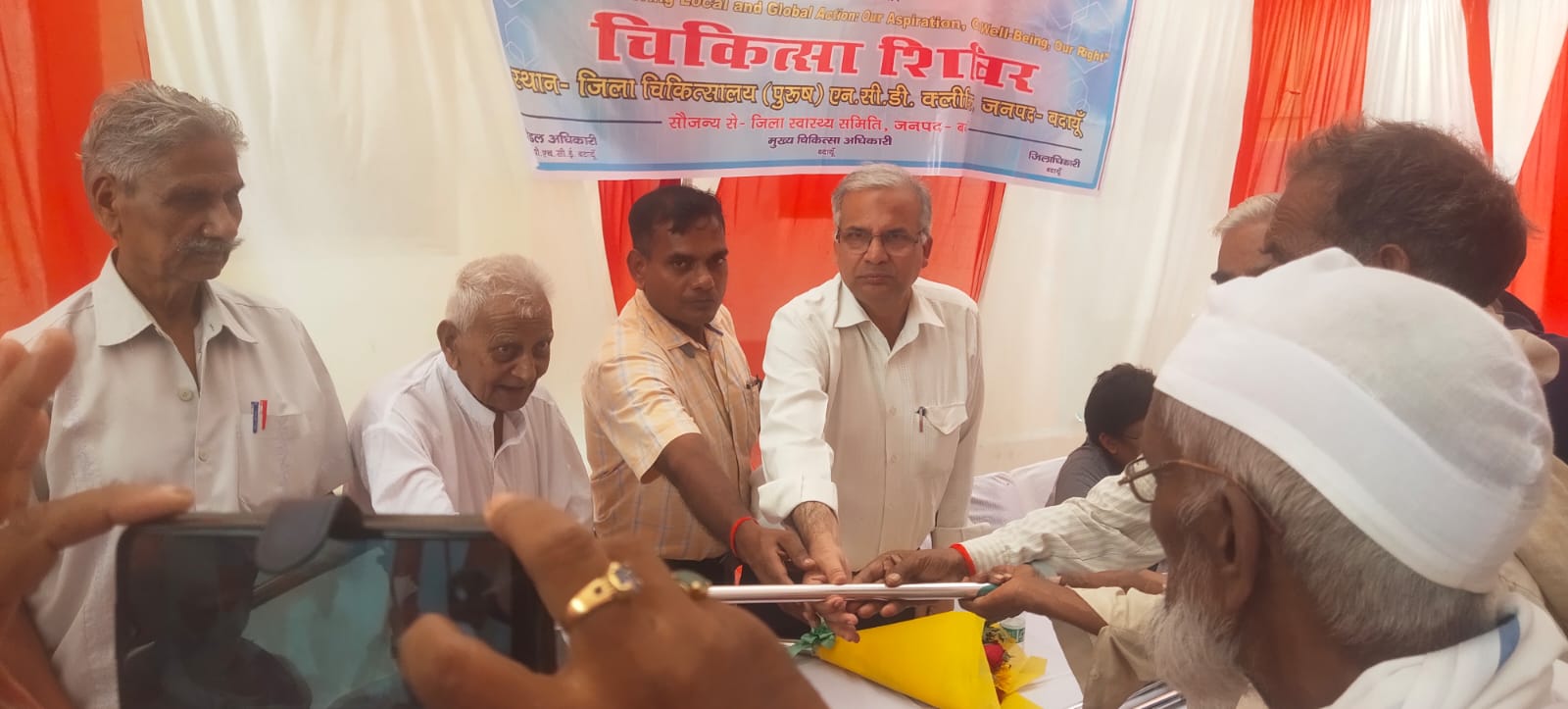बदायूँ । मुख्य चिकित्सा अधिकारी डॉ0 रामेश्वर मिश्रा की अध्यक्ष्यता में राष्ट्रीय स्वास्थ्य मिशन उ0प्र0 के तत्वाधान में राष्ट्रीय वृद्धा स्वास्थ्य देखभाल कार्यकम के अन्तर्गत इंटरनेशनल डे ऑफ ओल्डर पर्सन के अवसर पर चिकित्सा एवं परामर्श शिविर का आयोजन जिला चिकित्सालय पुरूष में शुक्रवार को किया गया। मुख्य अतिथि व जनपद स्तरीय अधिकारियों द्वारा उपस्थित 100 वृद्धजनों को वॉकिगं स्टिक एवं वॉकर वितरित किए गए।
