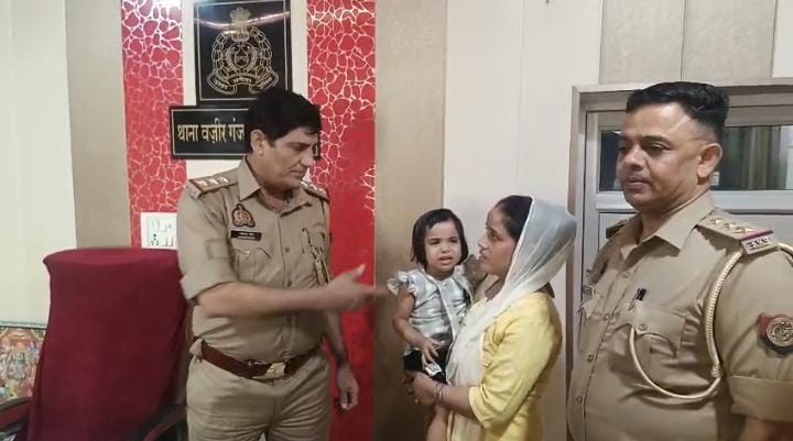 वजीरगंज में गुमशुदा बच्ची को सकुशल परिजनों को सौंपा।बच्ची खोने की खबर के महज आधे घंटे के अंदर वजीरगंज पुलिस की तत्परता से बच्चा हुआ बरामदवजीरगंज में सचिन कुमार की पुत्री उम्र 2 वर्ष निवासी आंवला रोड थाना वजीरगंज के अंतगर्त बच्चे के खोने से परिजनों में हड़कंप मच गई। बच्ची की मां रोते हुए थाना वजीरगंज पहुंची।परिजनों द्वारा तत्काल थाना प्रभारी वजीरगंज को सूचित किया गया। थाना प्रभारी जितेंद्र कुमार सिंह ने तुरंत एक्शन लेते हुए,SI राजाराम के द्वारा SI राजाराम ने महज आधे घंटे के अंदर खुई हुई बच्ची को सकुशल बरामद किया। जो कि बच्ची की मां खील,परमल खरीदते समय उनकी बच्ची किसी कारण गुम हो गई थी। पुलिस ने अपने अथक प्रयास से बच्चे को बरामद कर घर वालों को सुपुर्द किया। बच्ची के सकुशल घर लौटने पर परिजनों ने राहत की सांस ली और पुलिस टीम का आभार व्यक्त किया। क्षेत्रीय जनता ने भी वजीरगंज पुलिस की इस त्वरित और प्रभावी कार्रवाई की सराहना की है।