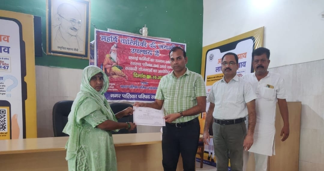 सहसवान, बदायूं । नगर पालिका परिषद में बाल्मीकि जयंती के अवसर पर एक कार्यक्रम का आयोजन किया गया। इस अवसर पर अधिशासी अधिकारी डॉ. राजेश कुमार एवं प्रभारी सफाई निरीक्षक अब्दुल फरीद खां द्वारा मिशन शक्ति 5.0 के अंतर्गत नगर की महिला सफाई कर्मियों को सम्मानित किया। कार्यक्रम के दौरान अधिशासी अधिकारी डा० राजेश कुमार ने समाज सुधारक महर्षि वाल्मीकि के जीवन, उनके आदर्शों एवं समाज में स्वच्छता के महत्व पर प्रकाश डाला। अधिशासी अधिकारी डॉ. राजेश कुमार ने कहा कि महिला सफाई कर्मी नगर की रीढ़ हैं, जो प्रतिदिन कठिन परिस्थितियों में भी नगर को स्वच्छ और सुंदर बनाए रखने का कार्य करती हैं। इन्हें सम्मानित करना हमारा नैतिक दायित्व है।